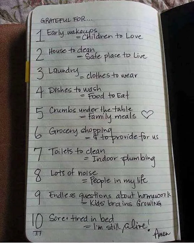 Is there anything in your life that you silently curse? Would having a list like this taped to your bathroom mirror help keep daily tasks in perspective? A friend of mine posted this in December, and I knew instantly where I'd hang it in my house to remain grateful.