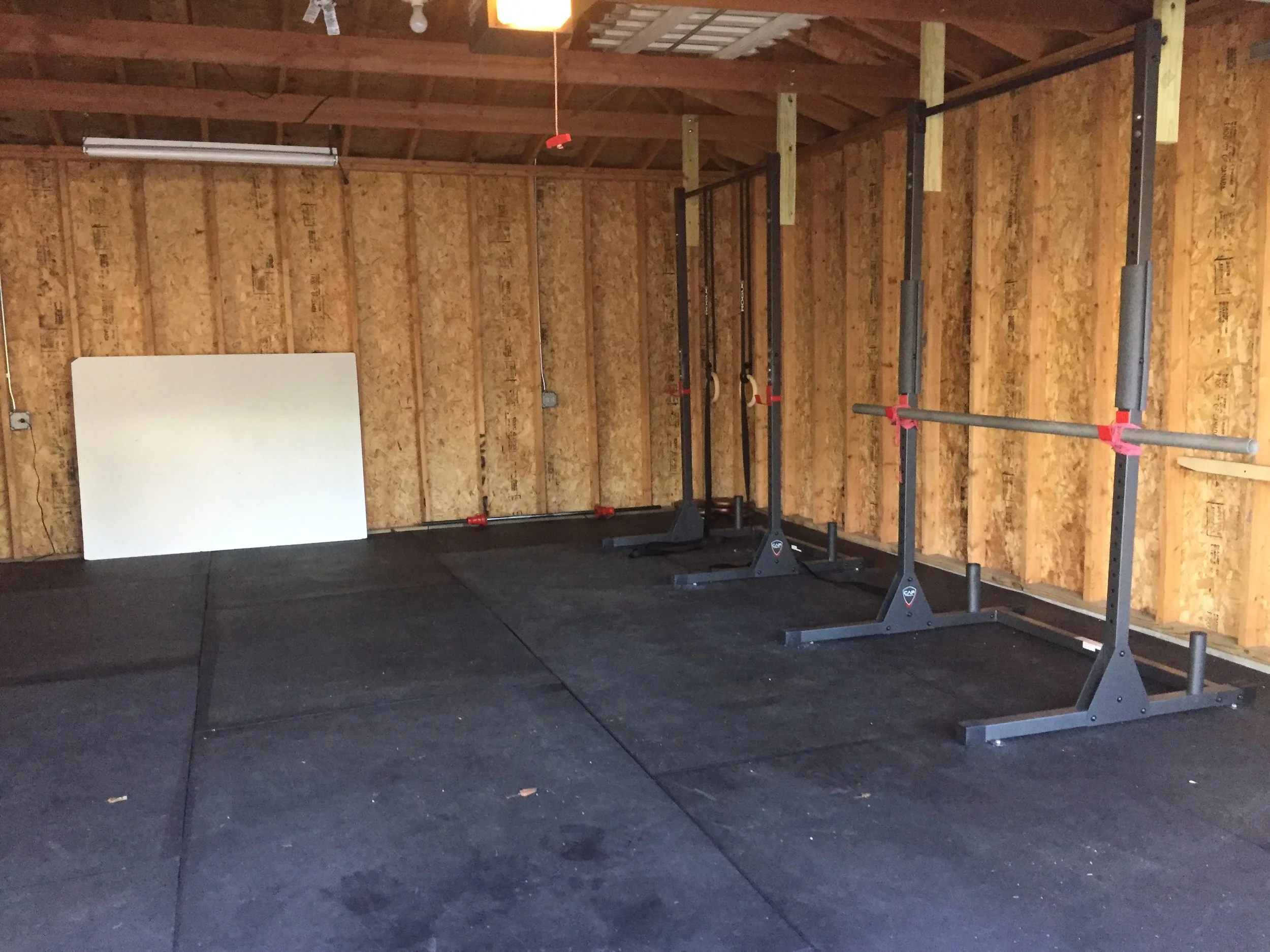 Instead this garage gym has continually adapted to some need. It started with the kids classes, so very little equipment was necessary. As our personal training clients increased, a rowing machine became important. Our latest addition of a rig with improved squat racks and varied heights of bars was in response to wanting something more robust as well as to accommodate taller clients in our pull-up clinic.